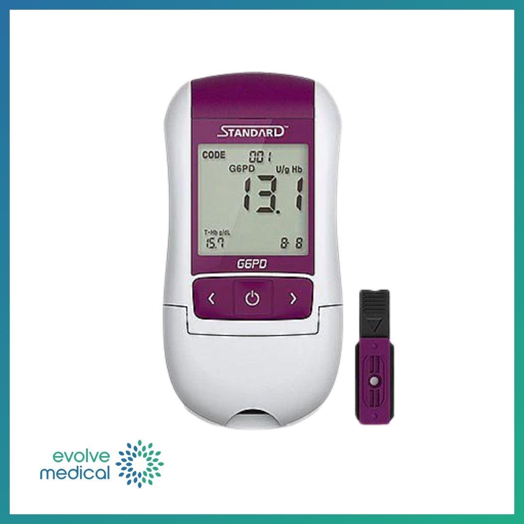 The STANDARD G6PD System is an enzymatic colorimetric assay intended for the semi-quantitative measurement of G6PD activity and total hemoglobin (T-Hb) concentration in non-anticoagulated capillary (finger-stick) whole blood or venous whole blood (K2-EDTA, sodium heparin, or acid citrate dextrose [ACD]). The STANDARD G6PD Test System is indicated for diff erentiating normal, intermediate, and defi cient G6PD activity levels to aid in the detection of G6PD defi ciency in individuals and in the determination of hemoglobin level. The test will provide results expressed as the ratio of units of G6PD activity per gram of hemoglobin (G6PD U/g Hb) which can be used to determine G6PD status. Samples which generate a G6PD defi cient or intermediate result should be assayed using a quantitative G6PD test to verify a defi ciency. T-Hb results expressed in grams per deciliter (g/dL) are used to determine G6PD status and not state of anemia. T-Hb results should be confirmed by a quantitative test when monitoring disease progression or making treatment decisions. The STANDARD G6PD Test System is intended for use by health care professionals in a laboratory or point-of-care environment. The system is for in vitro diagnostic use only. The STANDARD G6PD Test has not been validated for use with neonatal samples. The STANDARD G6PD Analyzer must be used exclusively with the STANDARD G6PD Test Device, STANDARD G6PD Control, and STANDARD G6PD Check strip manufactured by SD BIOSENSOR.