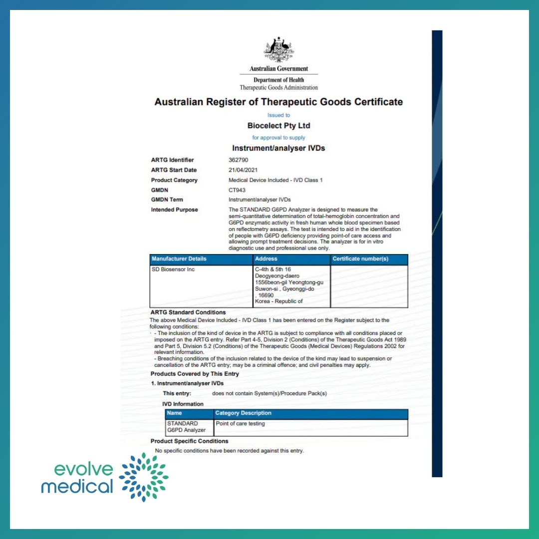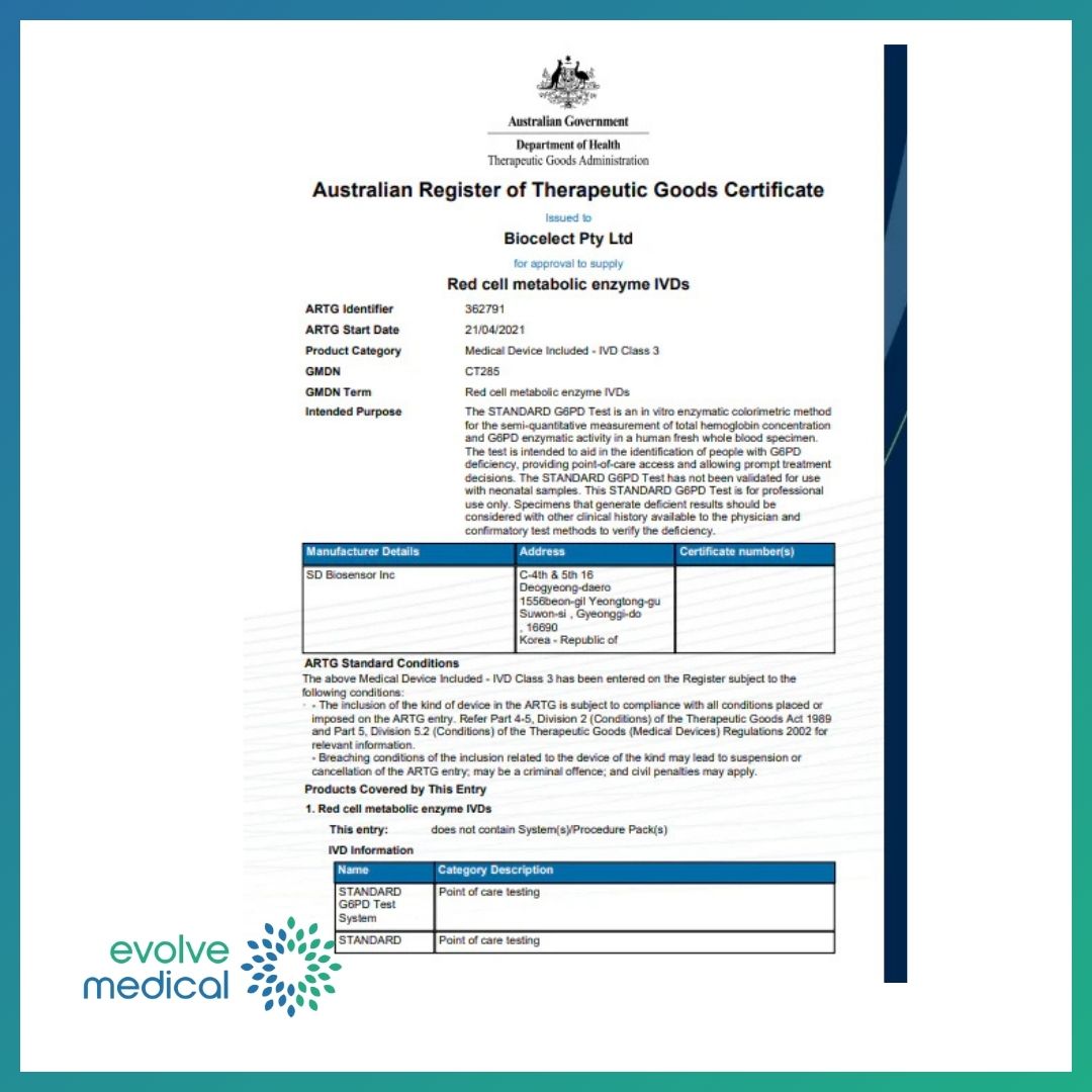 The only quantitative G6PD Point of Care Test registered in Australia.